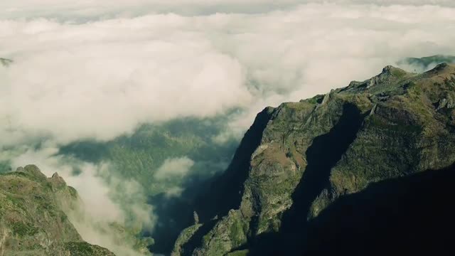 Aerial View of the Canyon and Mountains with Clouds, Island Madeira Portugal