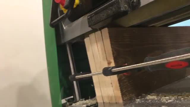> Planing Boards at the Planer Machine Close up