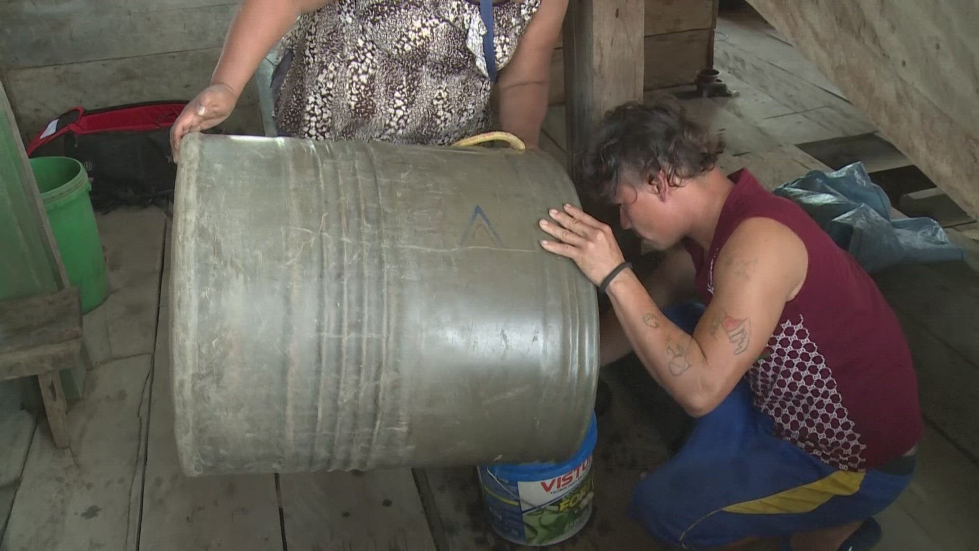 > Peruvian Man Rows Boat in Amazon