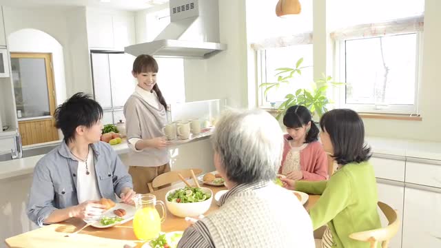 738986 - Two Young Friends Drink Tea at Table Slow Motion