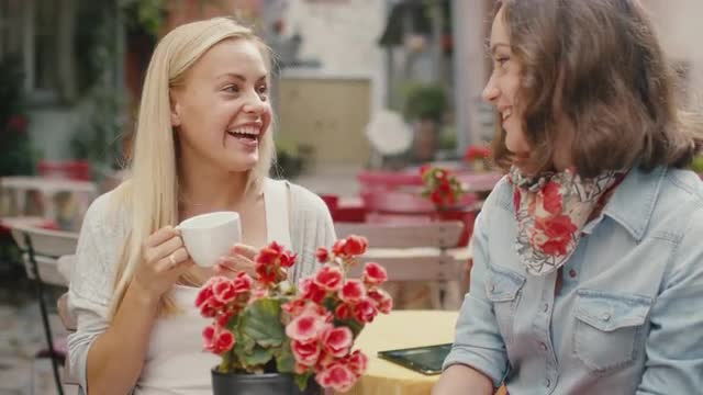 748018 - Two Friends Arranged Tea Party Slow Motion