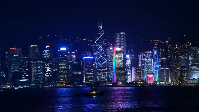 > Time lapse of night ferry in Victoria Harbour