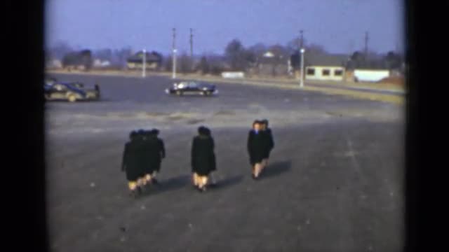1947: beautiful young women dressed in uniforms with ties and hats gathered outside NEW YORK