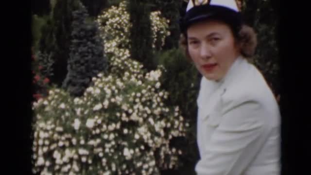 > 1947: woman sitting outside observing garden, and enjoying it. NEW YORK
