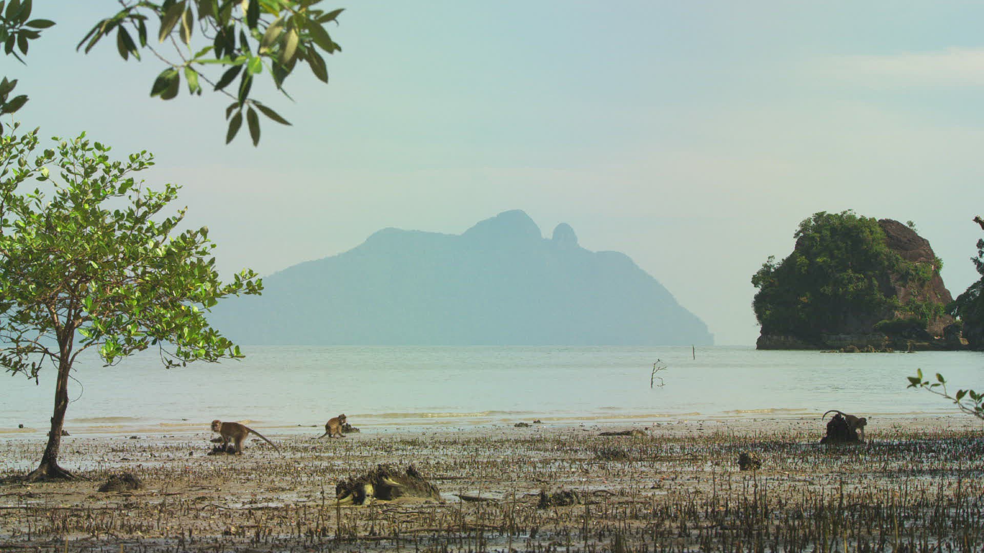 > 1946: monkeys gathered in group eating some food items inside somewhere. CALCUTTA INDIA