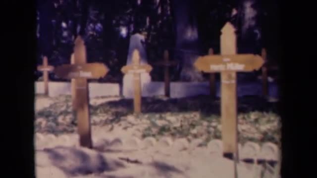 > 1945: identical wooden crosses with white lettering in rows in cemetery FRANCE