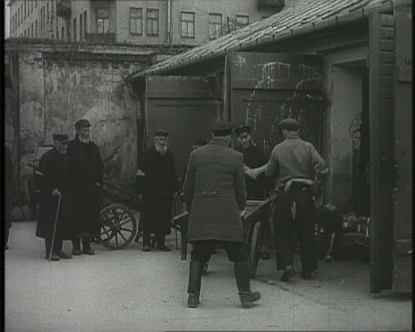 > 1946: three black men pushing wheeled object down road BOMBAY INDIA
