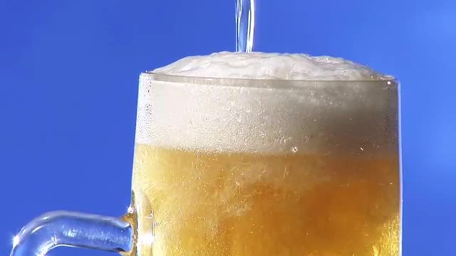 Close-up shot of a glass with cold light beer and bubbles. Refreshing alcohol beverage