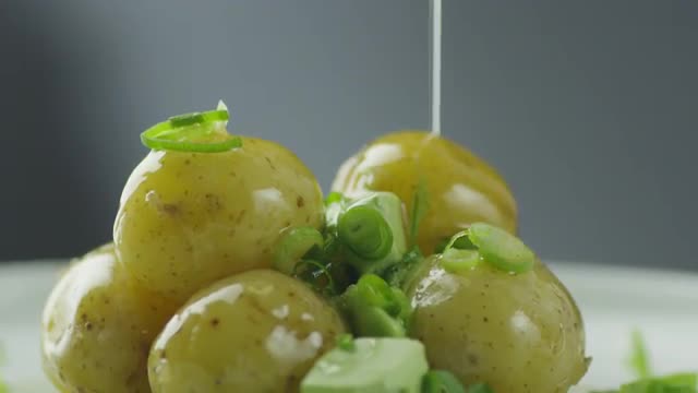 Close-up shot of woman dining with meat patties, fried potatoes, fresh tomatoes and onions