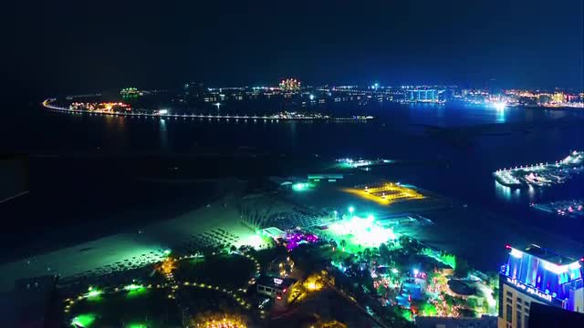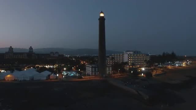 Aerial night view of Gran Canaria Island. Maspalomas Lighthouse at the southern end of the island. Spain