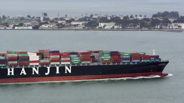 641762 - 1963: large cargo ship is moving through the blue waters of the sea CALIFORNIA