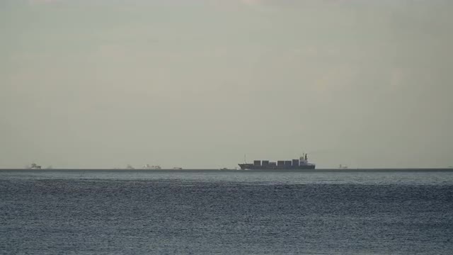 922260 - Cargo Ship With Containers Sailing Off Out To Sea
