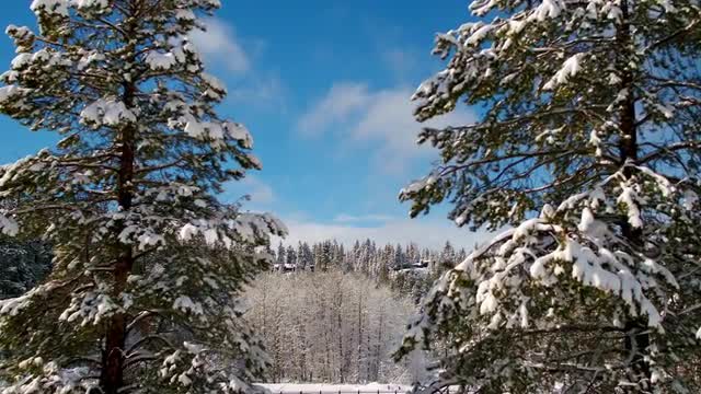 2243974 - Gentle Flying Views Through the Swiss Winter Landscape Trees