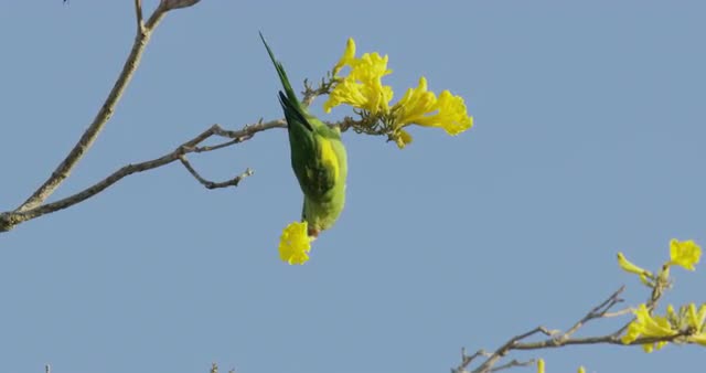 > Macro Closeup pan right of a Green Moth Caterpillar on a Tree Branch