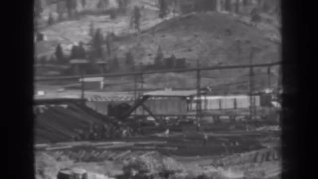 > 1937: crane grabbing logs and placing together KLAMATH CALIFORNIA