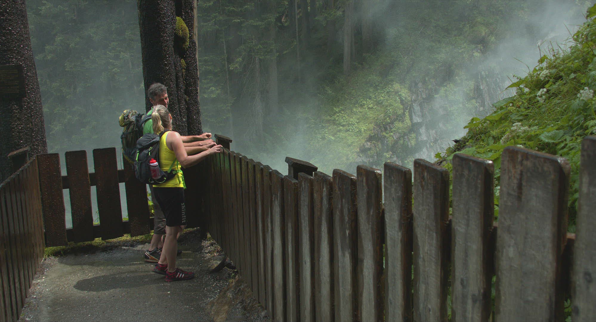 > 1937: tourists are enjoying to use wonderful waterfalls SAN FRANCISCO