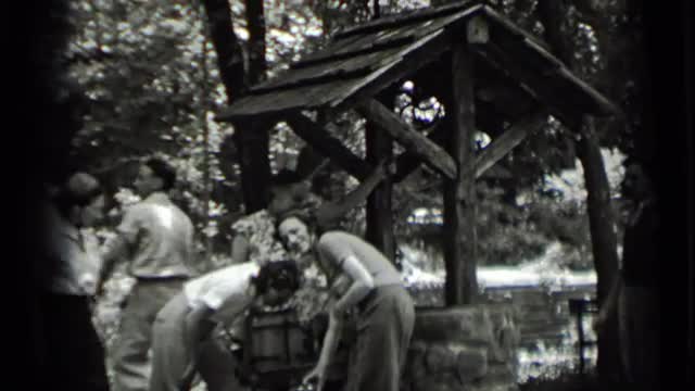 1939: group of people standing at well. CLEAR LAKE CALIFORNIA