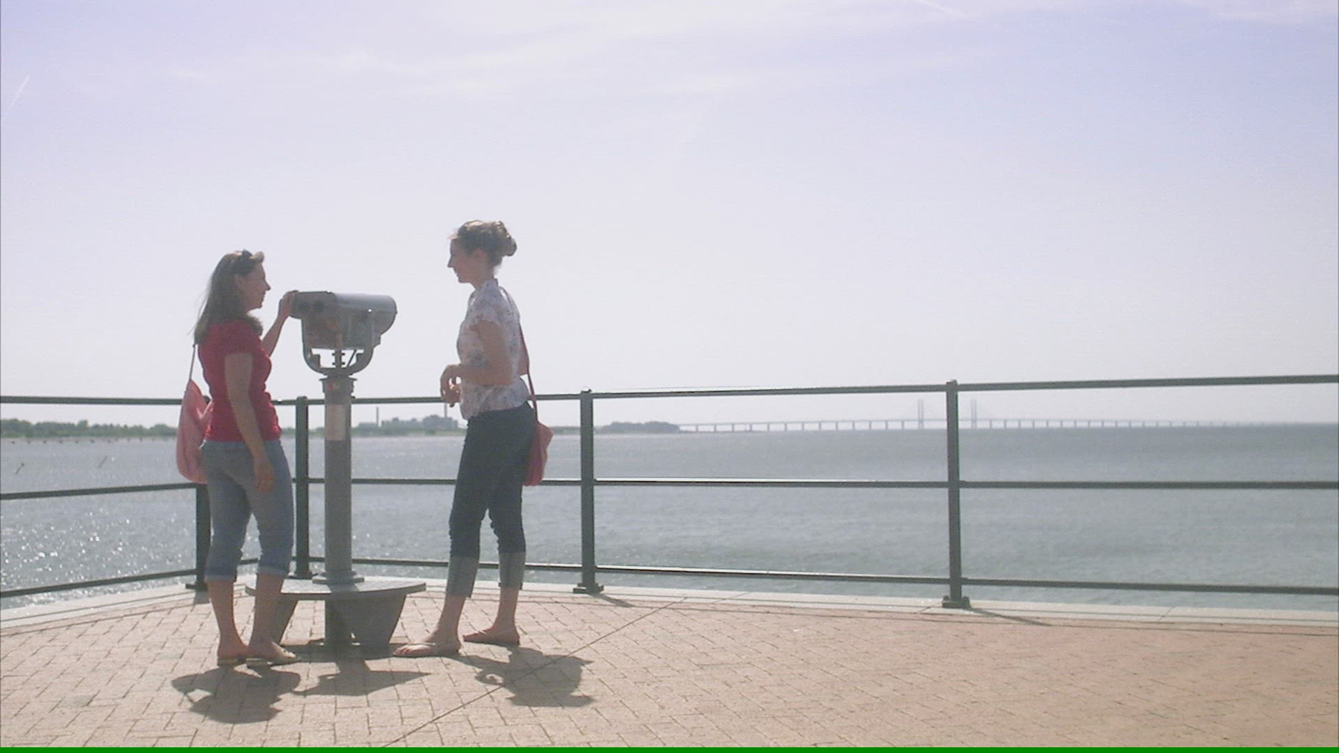 > 1939: two old women walking on man made bridge CLEAR LAKE CALIFORNIA
