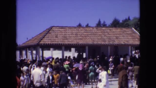 > 1939: people gather at decorative pavilion outdoors in sunshine COLORADO