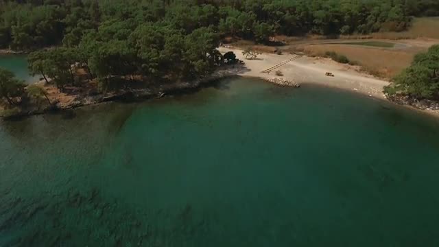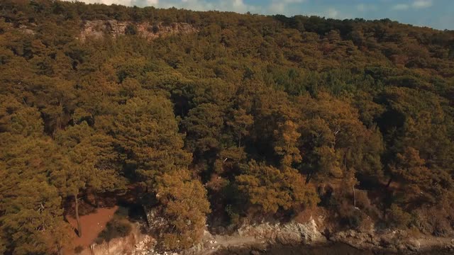 Aerial scene of rocky bay at the dalmatian coast. Drone.Rocky cliff over transparent water