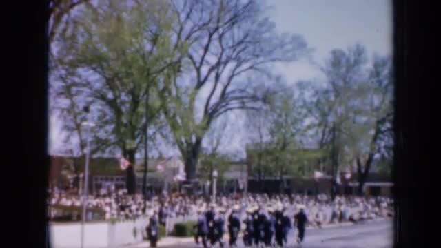 > 1940: peoples in place going parade with same uniform dresses. CANADA