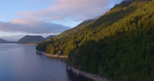 > 1940: the car in road with trees, lawn, water, buildings CANADA