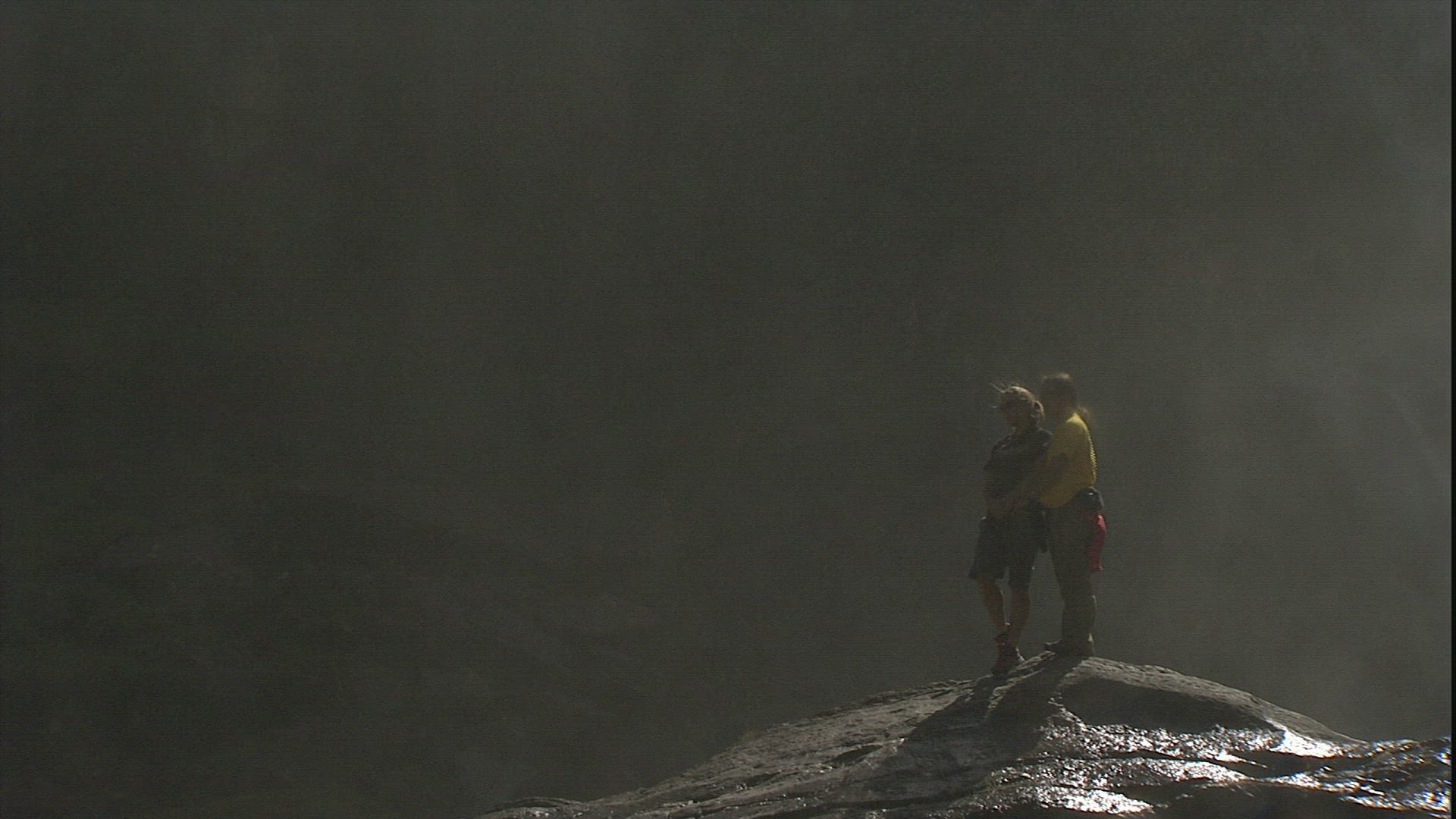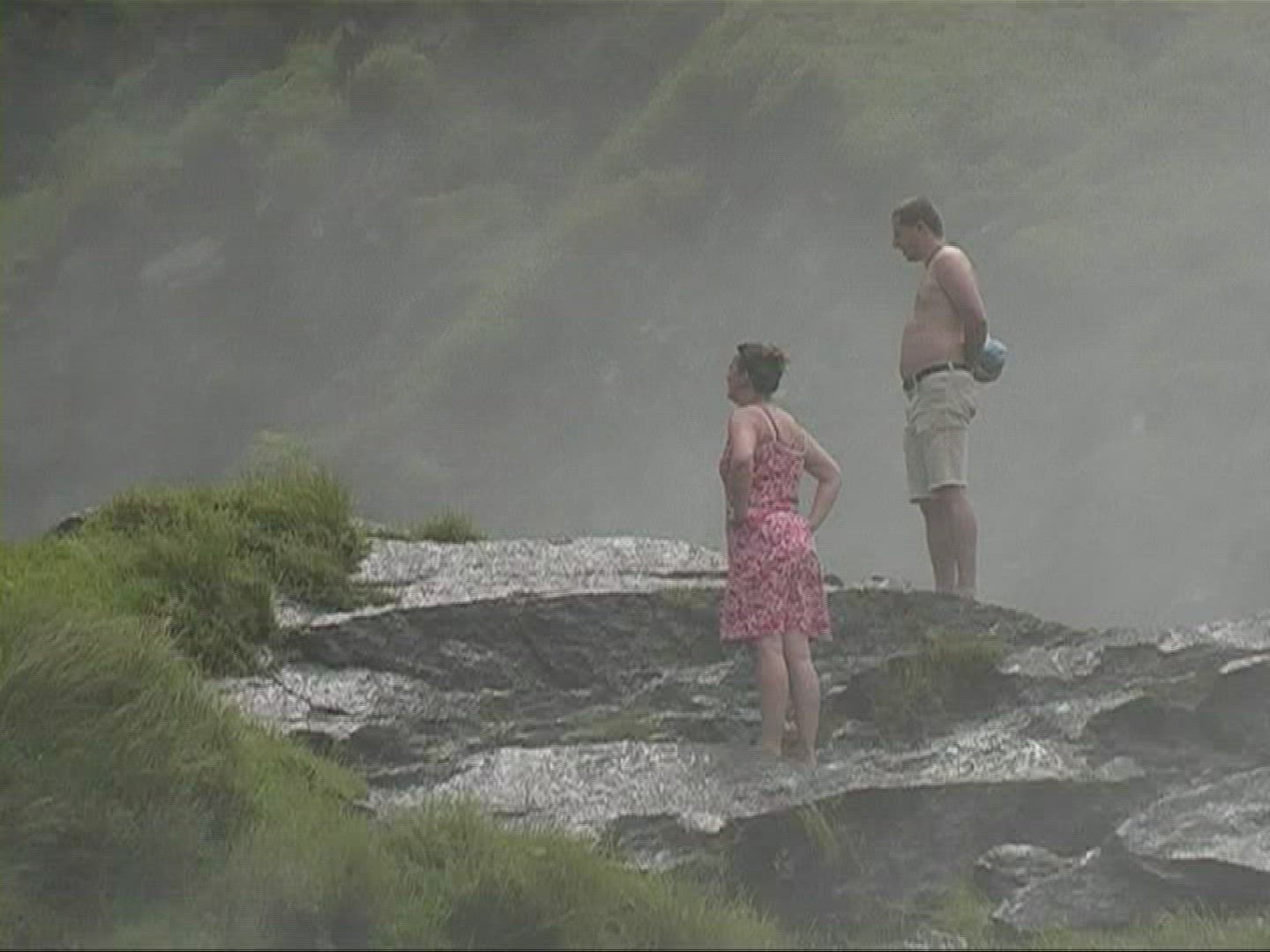 > 1941: the man was standing in park with waterfalls NEW YORK