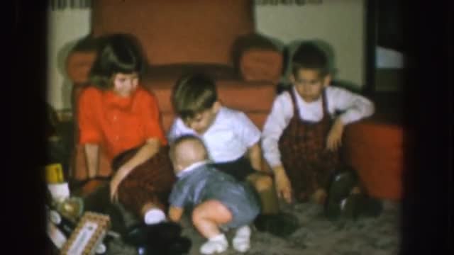 > 1958: the three children and one baby sitting with their mother MINNESOTA