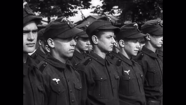 > 1959: american soldiers perform drill in front of crowd and american flags IOWA