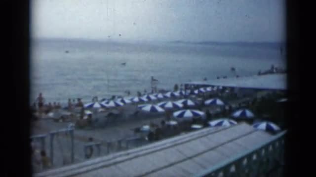> 1962: the people were sitting in beach and children were playing in swing CANNES FRANCE