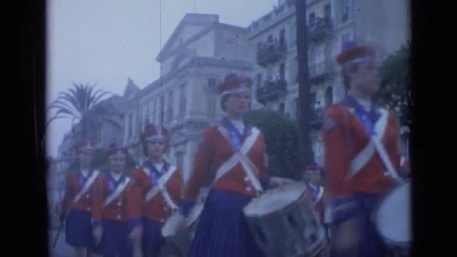 > 1962: lots of women walking and doing parade at daytime CANNES FRANCE