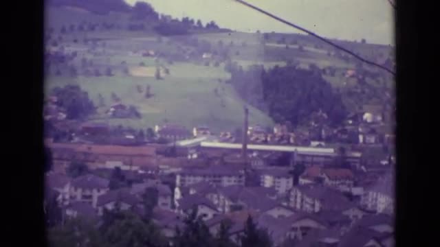 > 1962: people are travelling their journey using escalators that crosses hills LUCERNE SWITZERLAND