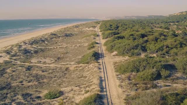 Aerial View Railroad on Sandy Beach, Portugal