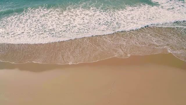 Aerial View Small Waves on Sandy Beach