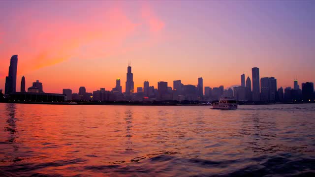 Chicago City sunset Lake Michigan at dusk Sears Tower, Illinois, North America, shot on RED EPIC