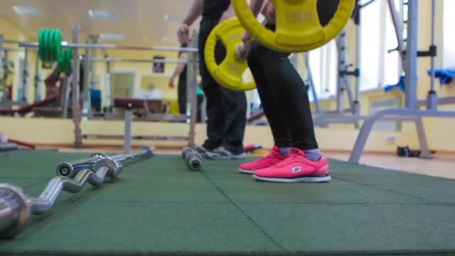 > Girl in Green Trains With a Yellow Barbell