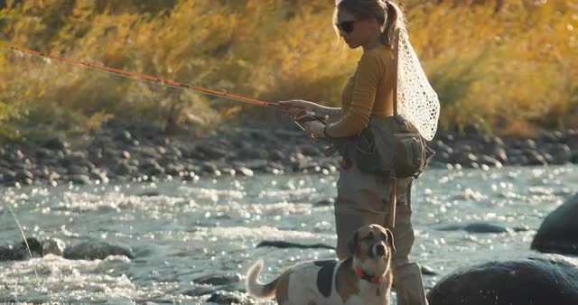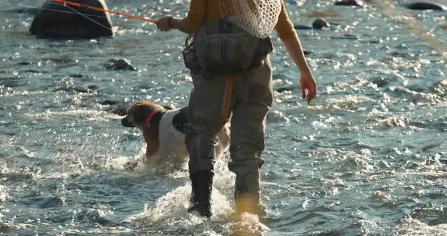 > 1983: man by lake with dog carrying fish he caught RUSSIA