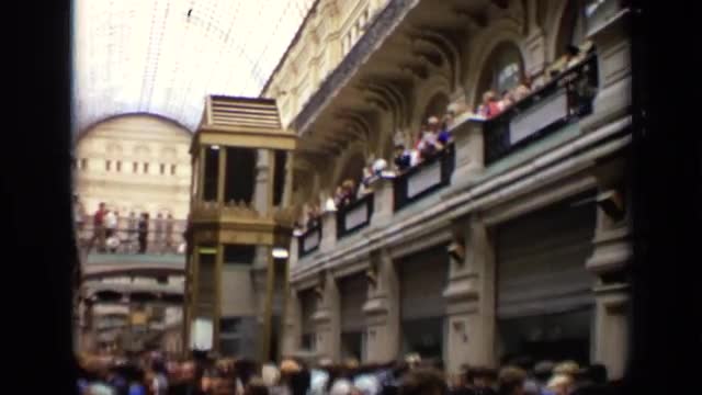 > 1971: crowded metropolitan area during day with hundreds of men and women walking along MOSCOW RUSSI