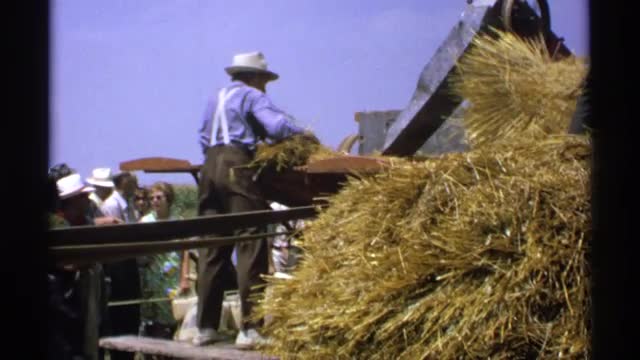 > 1963: lots of people's standing with farming machines in huge land in russia RUSSIA