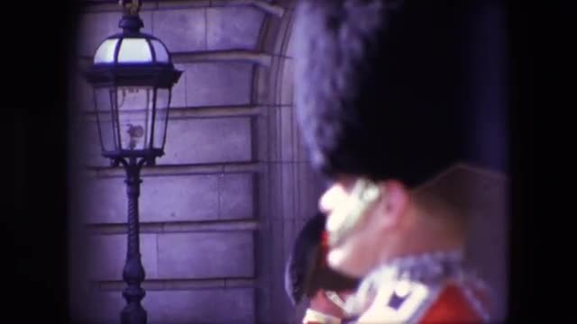 > 1963: royal british guard stands like statue at his post, guarding castle ENGLAND