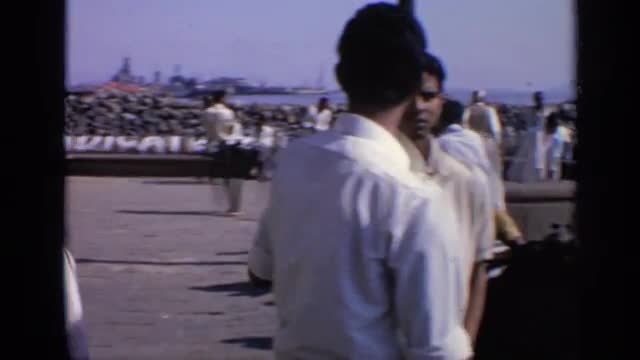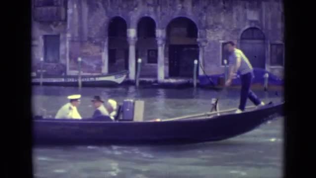 > 1962: the man was walking in platform, boat was standing and running in water VENICE ITALY