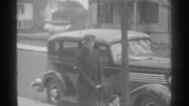 1949: the mother and cute child walking along roadside NEW YORK
