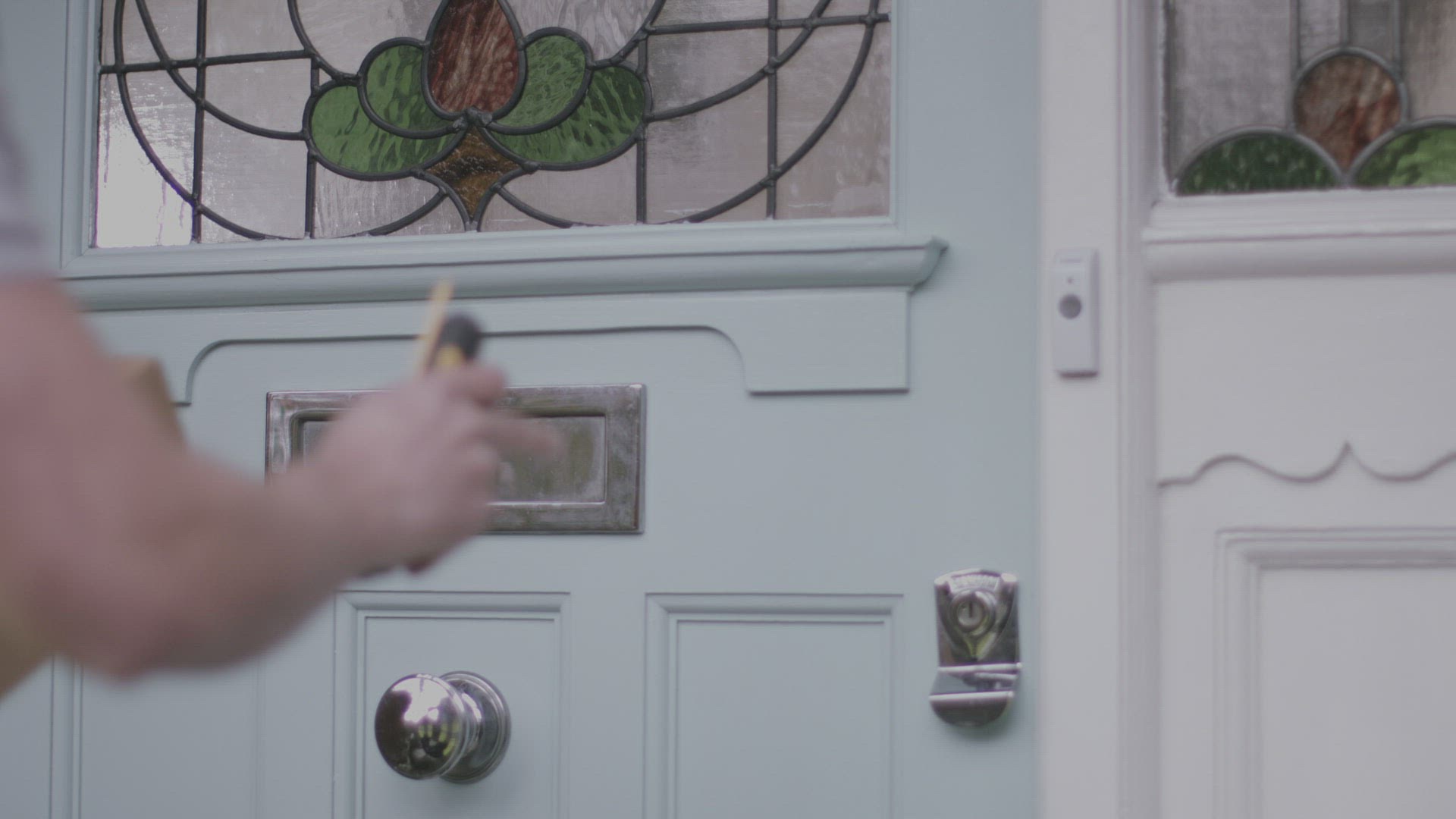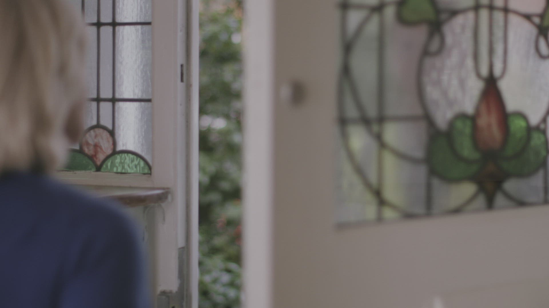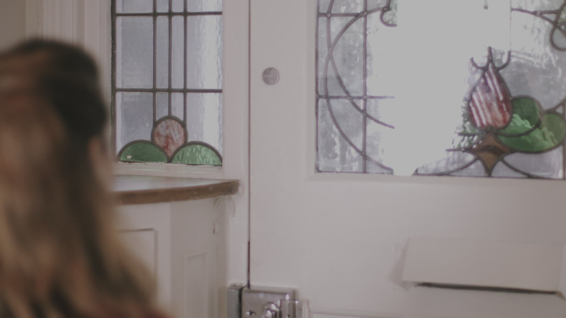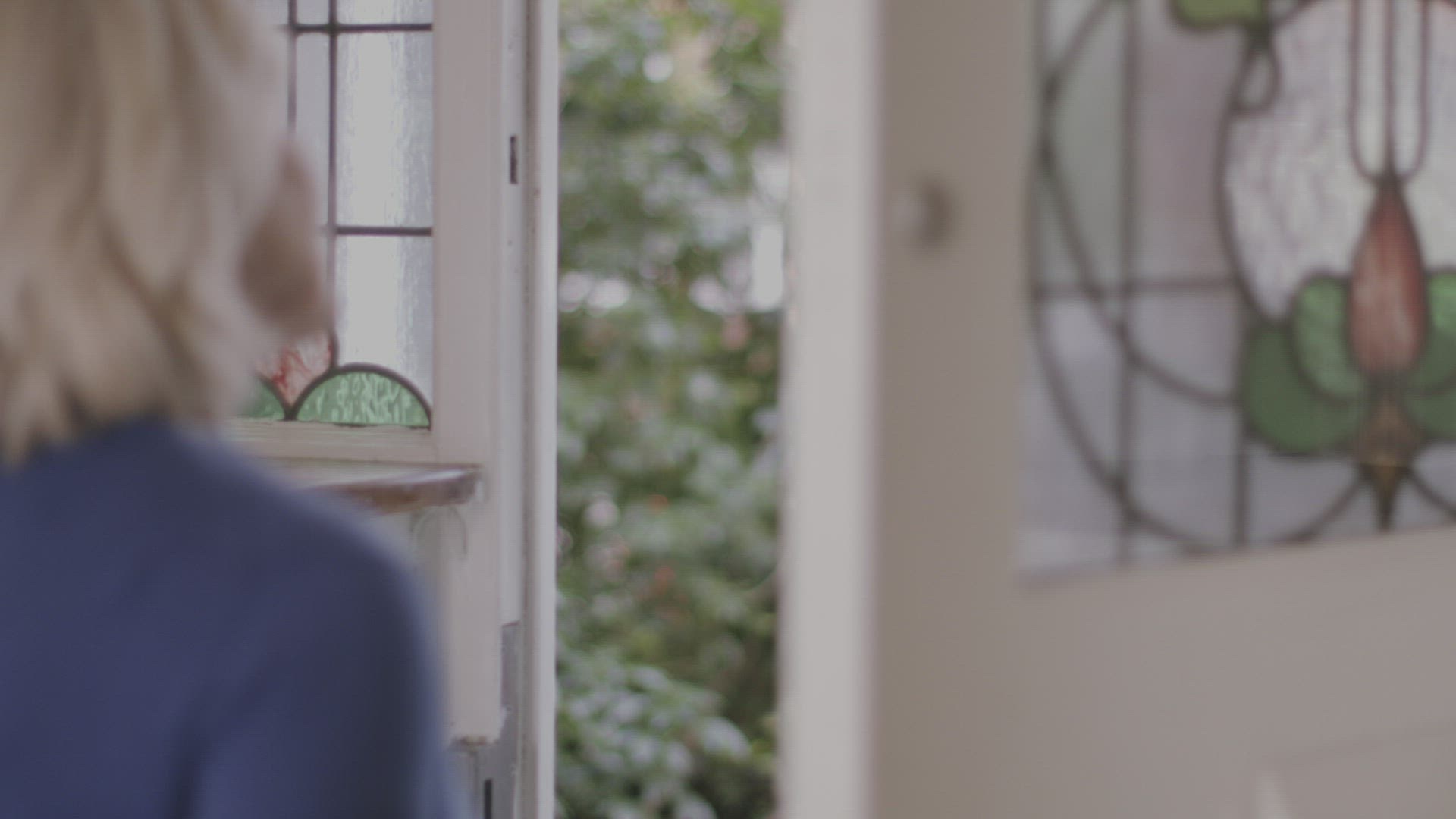> 1948: man opening front screen door of old house and waving at camera NEW YORK