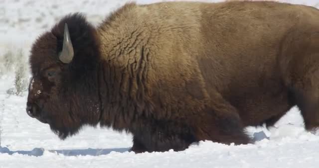 424278 - Two coyotes eating a bison during winter in Yellowstone National Park