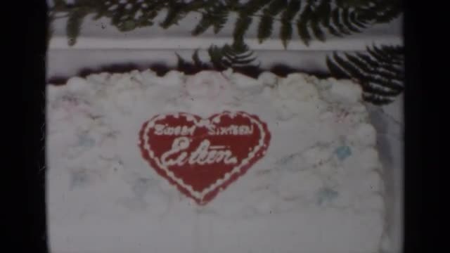 > 1954: red and white heart shaped icing on a white cake NEW YORK