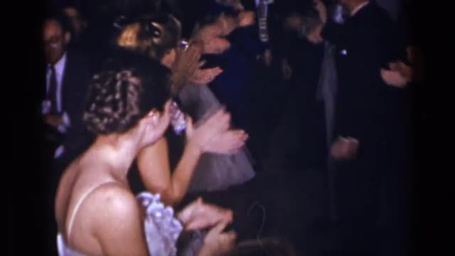 > 1954: young men and women dance and clap at a formal celebration. NEW YORK