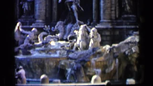 > 1960: the trevi fountain in rome, italy during the day with several tourists standing in front VATIC