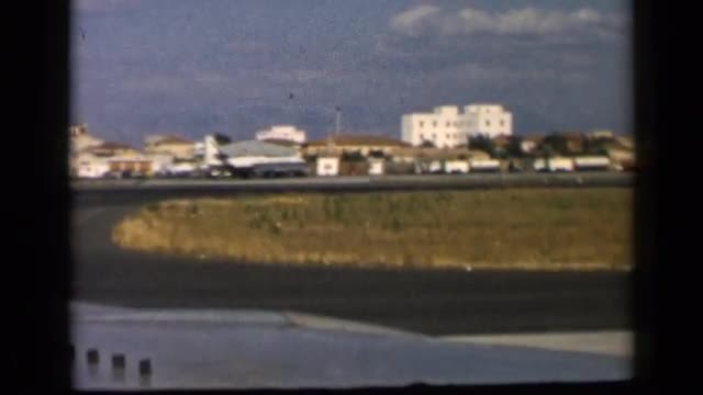 > 1960: a large airplane moving slowly along the runway in the terminal VATICAN ITALY