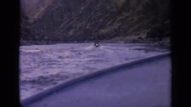 > 1963: footage of ocean, mountains and a jet ski from a boat. IDAHO