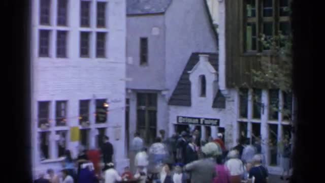 > 1964: people are gathered near buildings WORLDS FAIR NEW YORK
